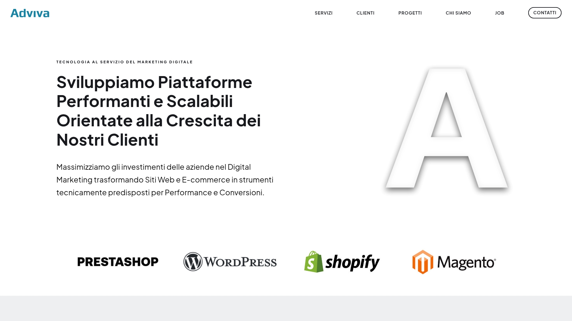 - Piattaforme ad alte prestazioni: Adviva realizza siti e e-commerce progettati per velocità e scalabilità, che favoriscono caricamenti rapidi e migliori metriche tecniche.