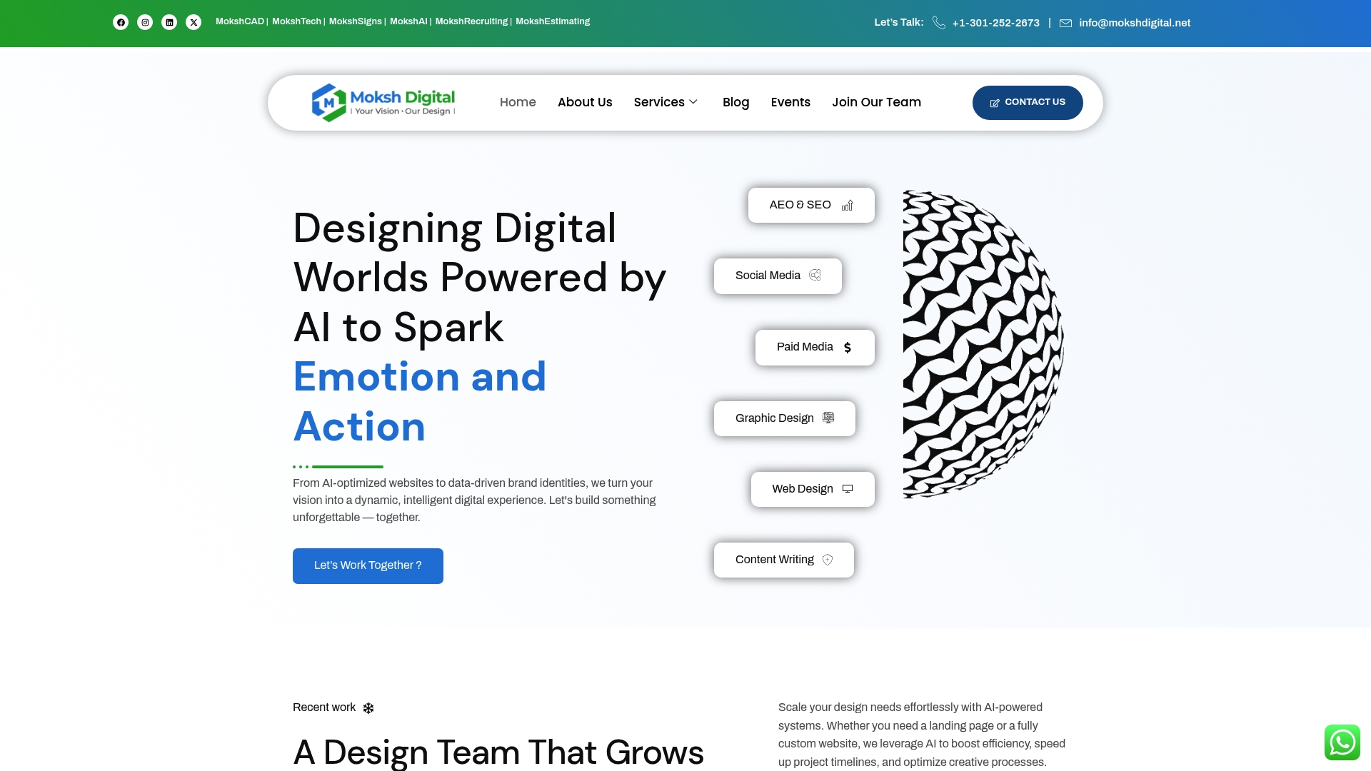 Moksh Digital è un'agenzia di marketing digitale che sfrutta l'AI per offrire design web, SEO, paid media, social media, graphic design e copywriting. In sostanza punta su velocità, flessibilità e soluzioni guidate dall'AI per ottenere risultati rapidi e scalabili entro il 2025 e oltre. Buona scelta se cerchi rapidità e automazione; meno indicata se desideri un approccio creativo esclusivamente umano.