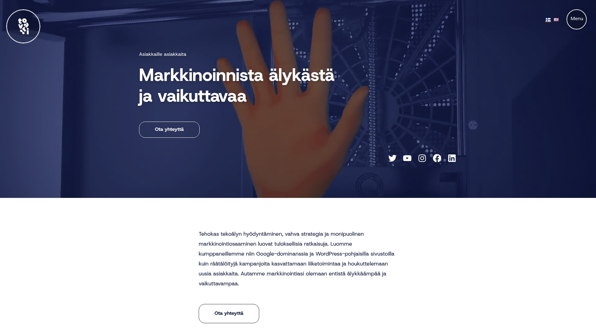 - Kokonaisvaltaiset ratkaisut: He tarjoavat palvelukokonaisuuden, joka yhdistää strategian, visuaalisen ilmeen ja kasvumarkkinoinnin, jolloin sinun ei tarvitse kombinoida useita toimijoita.