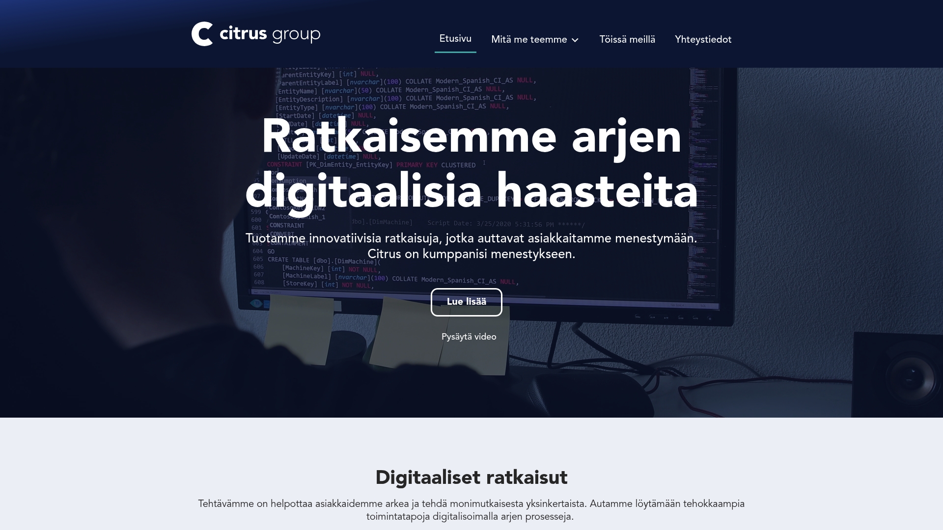 - Monipuolinen osaaminen: Citrus yhdistää ohjelmistokehityksen, verkkopalvelut ja SaaS-ratkaisut yhdeksi kokonaisuudeksi, mikä vähentää toimittajahyppyjä.