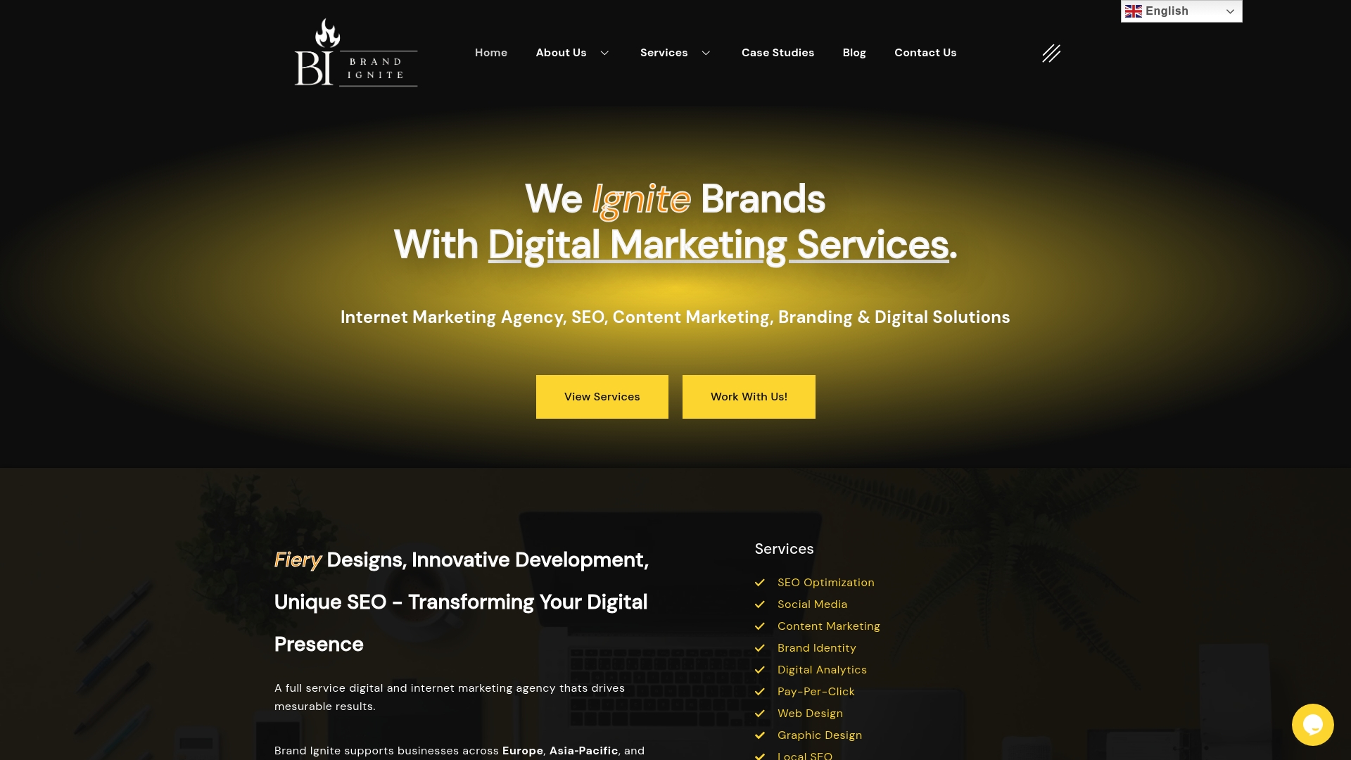 Brand Ignite leverer Search Engine Optimization, Branding, Design og Visuelle løsninger, Content Marketing og Copywriting, Website Design & Development samt gæsteindlæg og Link Building Services. Deres teams i Singapore, USA og Europa giver regional indsigt samtidig med international erfaring, hvilket gør dem i stand til at skræddersy strategier efter lokale markeder.