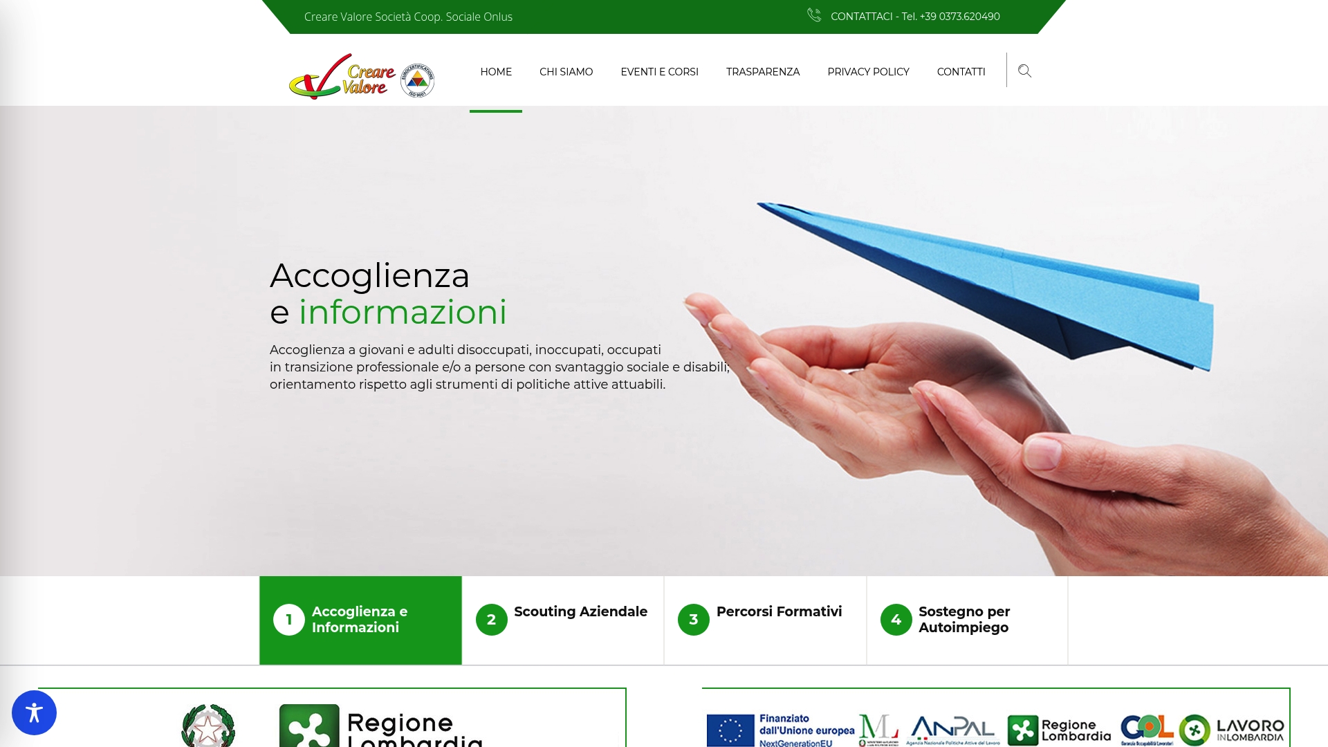Creare Valore Società Cooperativa Sociale Onlus è una realtà orientata ai servizi alla persona, con forte attenzione all'inserimento lavorativo, alla formazione e al supporto per soggetti svantaggiati. In pratica, offre percorsi formativi, tirocini e consulenza per favorire l'accesso al lavoro di giovani, adulti e persone con disabilità. Per un imprenditore locale disposto a collaborare con progetti sociali, può essere un partner concreto per politiche attive del lavoro. Tuttavia, informazioni su costi, modalità online e requisiti non sono chiaramente indicate.