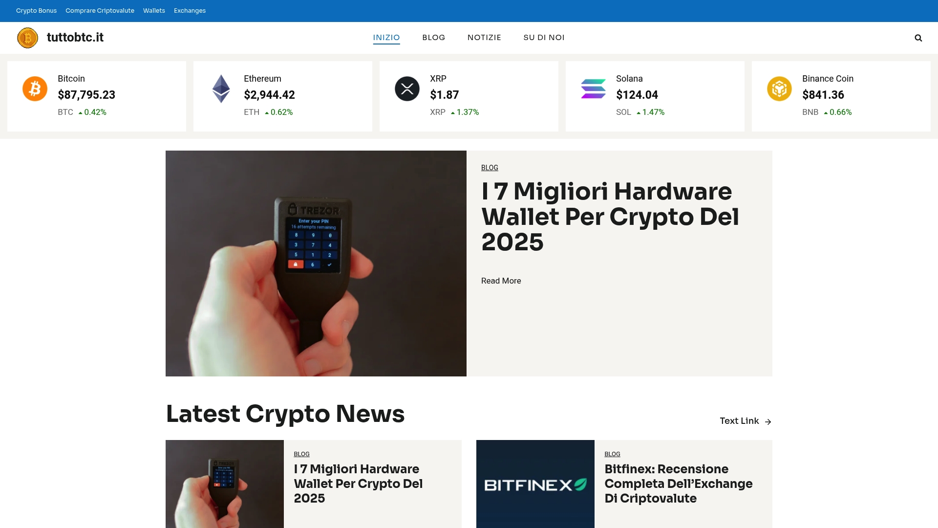 La piattaforma pubblica aggiornamenti quotidiani sul settore crypto e fornisce guide dettagliate pensate per investitori e appassionati italiani. È particolarmente utile per chi cerca analisi normative e fiscali applicate all'Italia e coverage di exchange autorizzati in Italia. Il focus tematico copre Bitcoin, Ethereum, Altcoin, NFT, DeFi e Metaverso, con contenuti strutturati per spiegare impatti pratici e rischi nel contesto legislativo nazionale.