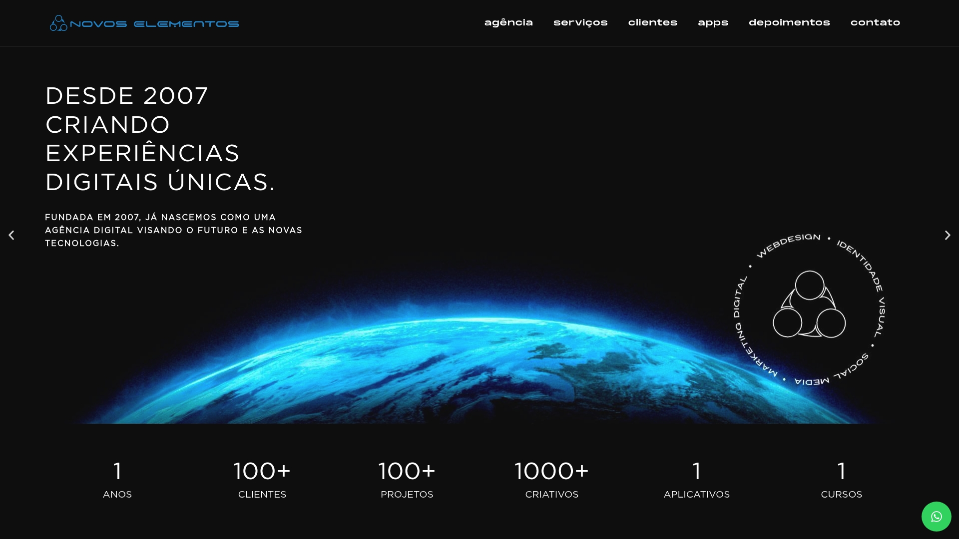 Novos ElementosDesenvolvimento web e branding com integração de marketingExperiência consolidada; marketing e tecnologia integradosPreços não especificados; muita amplitude de soluçõesNão especificado; orçamento sob consulta