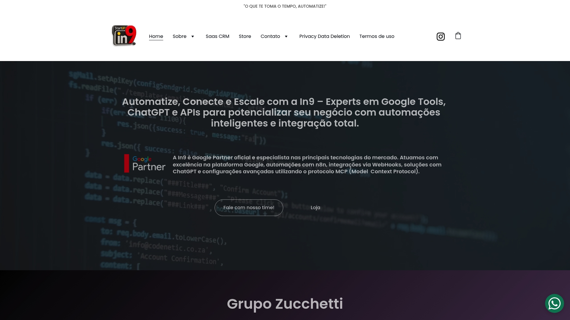 In9 Soluções InteligentesAutomação técnica e marketing digital orientados por IAFoco em integração técnica; parceiro oficial GoogleExige literacia digital elevada; preços não divulgadosNão especificado; orçamento sob consulta