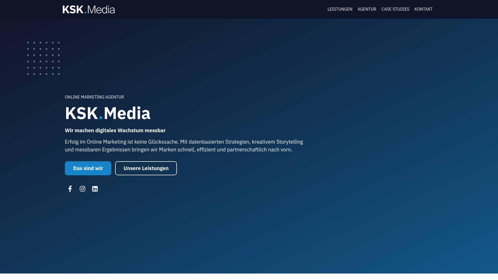 KSK Media GmbH präsentiert sich als erfahrene Online Marketing Agentur mit mehr als 10 Jahren Erfahrung und einem klaren Fokus auf datengestützte Strategien. Die Agentur kombiniert kreatives Storytelling mit Performance-orientierten Maßnahmen und deckt den Bereich von Webdesign bis SEO und Google Ads ab. Für Unternehmen, die messbare Umsatzsteigerung erwarten, liefert KSK Media pragmatische und laufend optimierte Kampagnen. Kurz gesagt. Solide und praxisorientiert.