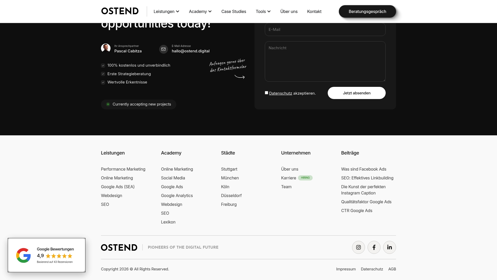Die Agentur verbindet Zertifizierungen mit einem kompletten Leistungsangebot und legt den Fokus auf messbare Performance. Das macht Ostend Digital zur pragmatischen Wahl für Unternehmen, die Strategie, technische Umsetzung und laufende Optimierung unter einer Leitung wünschen.