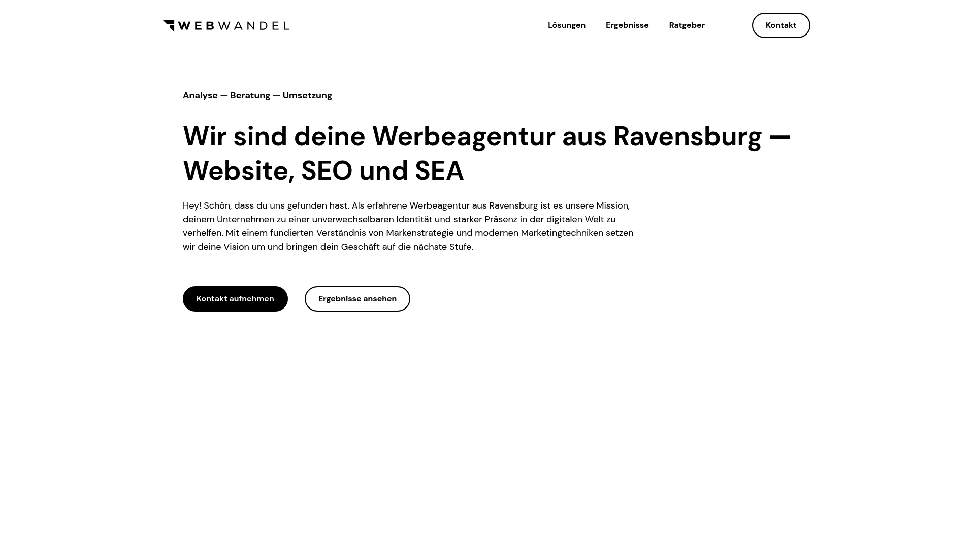 Webwandel ist eine regional verankerte Werbeagentur aus Ravensburg mit klarem Fokus auf Website‑Entwicklung, SEO und SEA. Die Agentur verspricht maßgeschneiderte Digitalstrategien für Unternehmen der Region und kombiniert klassische Website‑Arbeit mit gezielten Google‑Ads‑Kampagnen. Kurz gesagt: solide, lokal fokussiert und praktisch orientiert — ideal, wenn Sie schnelle Sichtbarkeit und eine moderne WordPress‑Präsenz brauchen.