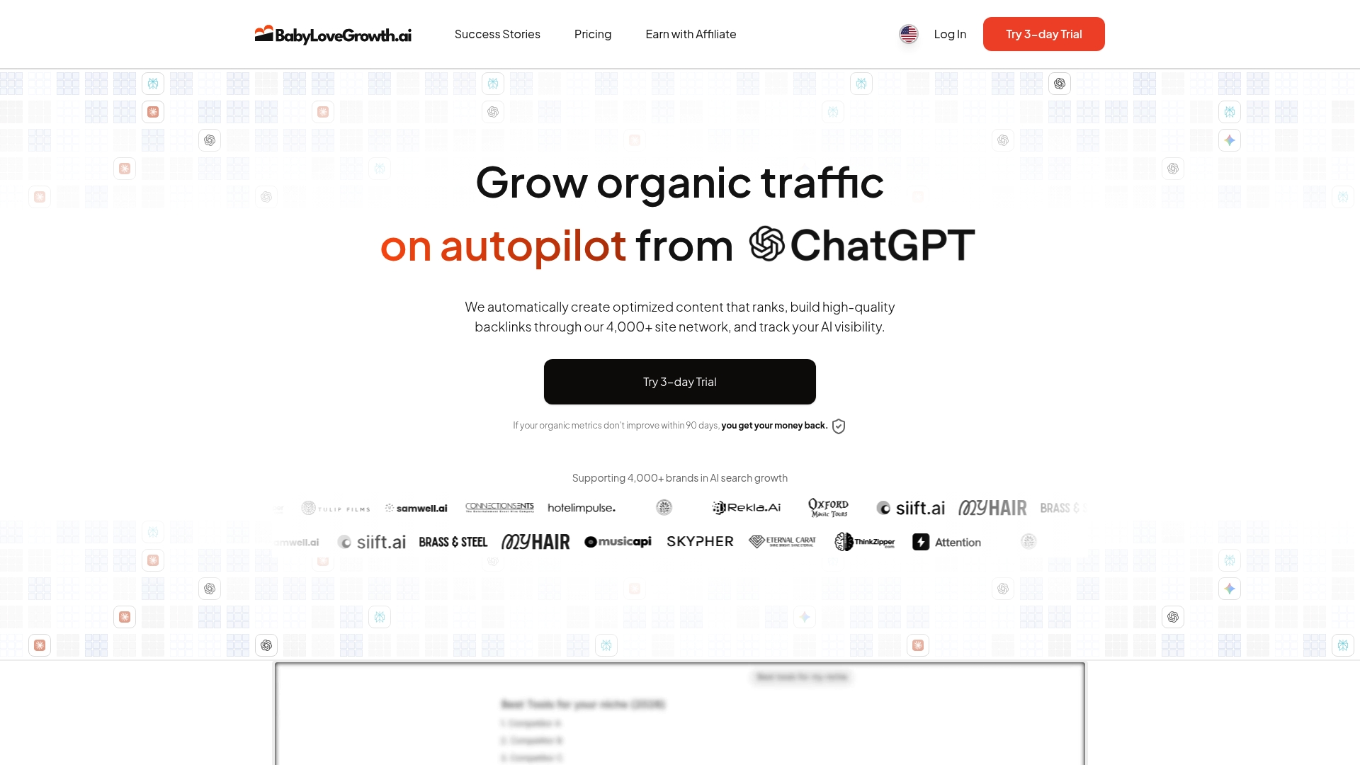 BabyLoveGrowth erstellt automatisch optimierte Inhalte, baut Backlinks über ein Netzwerk von über 4.000 Seiten auf und verfolgt Markenpräsenz in AI‑Tools wie ChatGPT und Perplexity. Zusätzlich bietet die Plattform technische SEO‑Audits, Reddit‑Sichtbarkeitsfunktionen und mehrsprachige Inhalte in über 50 Sprachen.