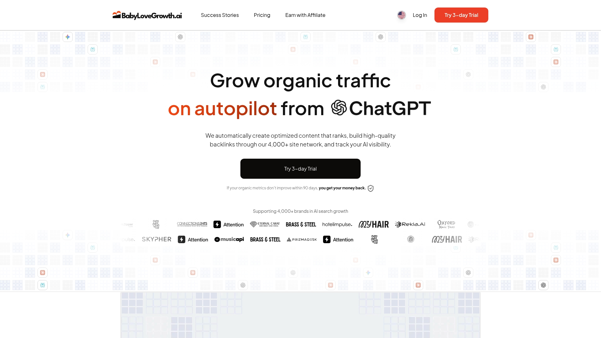 Med BabyLoveGrowth får du en komplett SEO-plattform som producerar högkvalitativt innehåll, bygger starka backlinks och levererar en skräddarsydd 30-dagars innehållsplan. Plattformen hjälper dig nå nästa nivå snabbare och skapar trygghet med resultatgaranti. Ta kontroll över din SEO och spara värdefull tid med vår smarta automatisering.