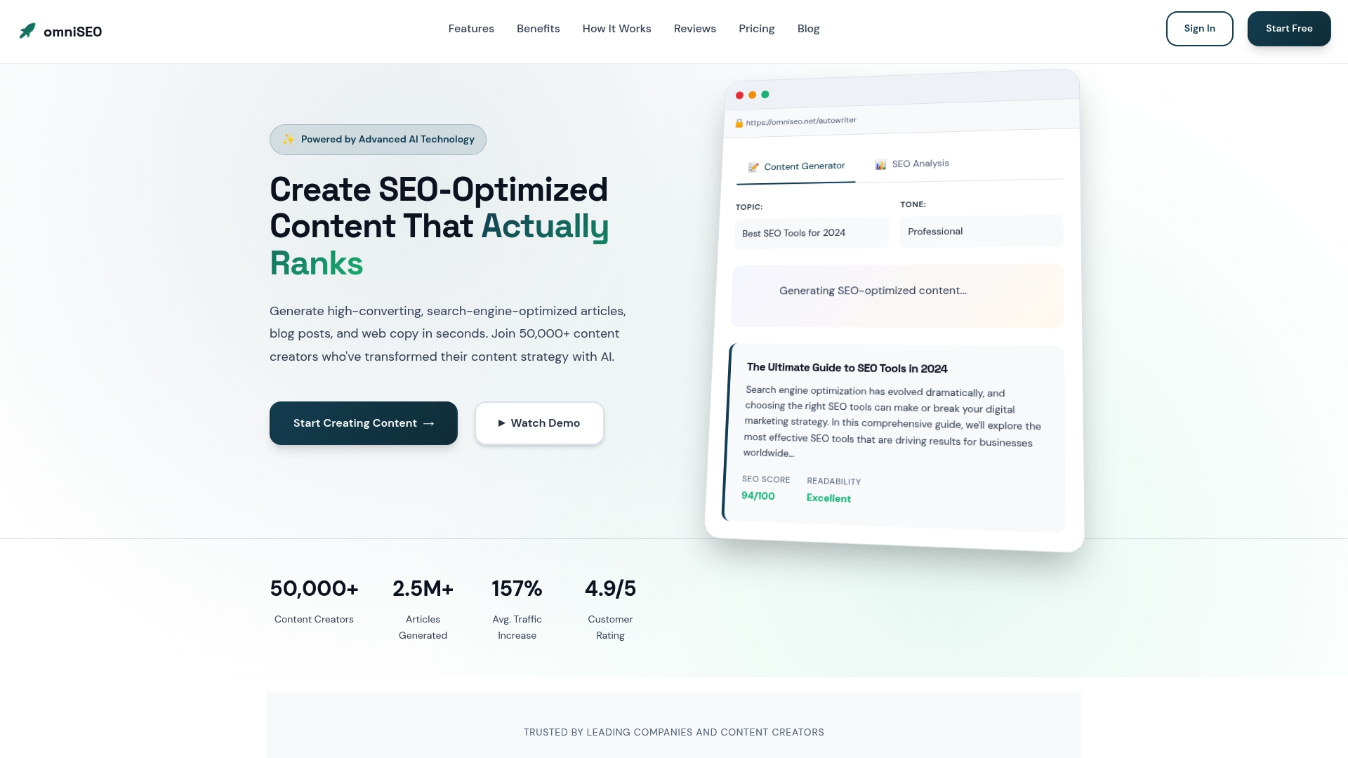 OmniSEO is een AI-gedreven platform voor het snel aanmaken van SEO-geoptimaliseerde artikelen en webteksten. De tool belooft schaalbare contentproductie voor marketeers en kleine tot middelgrote bedrijven die meer organisch verkeer willen genereren.