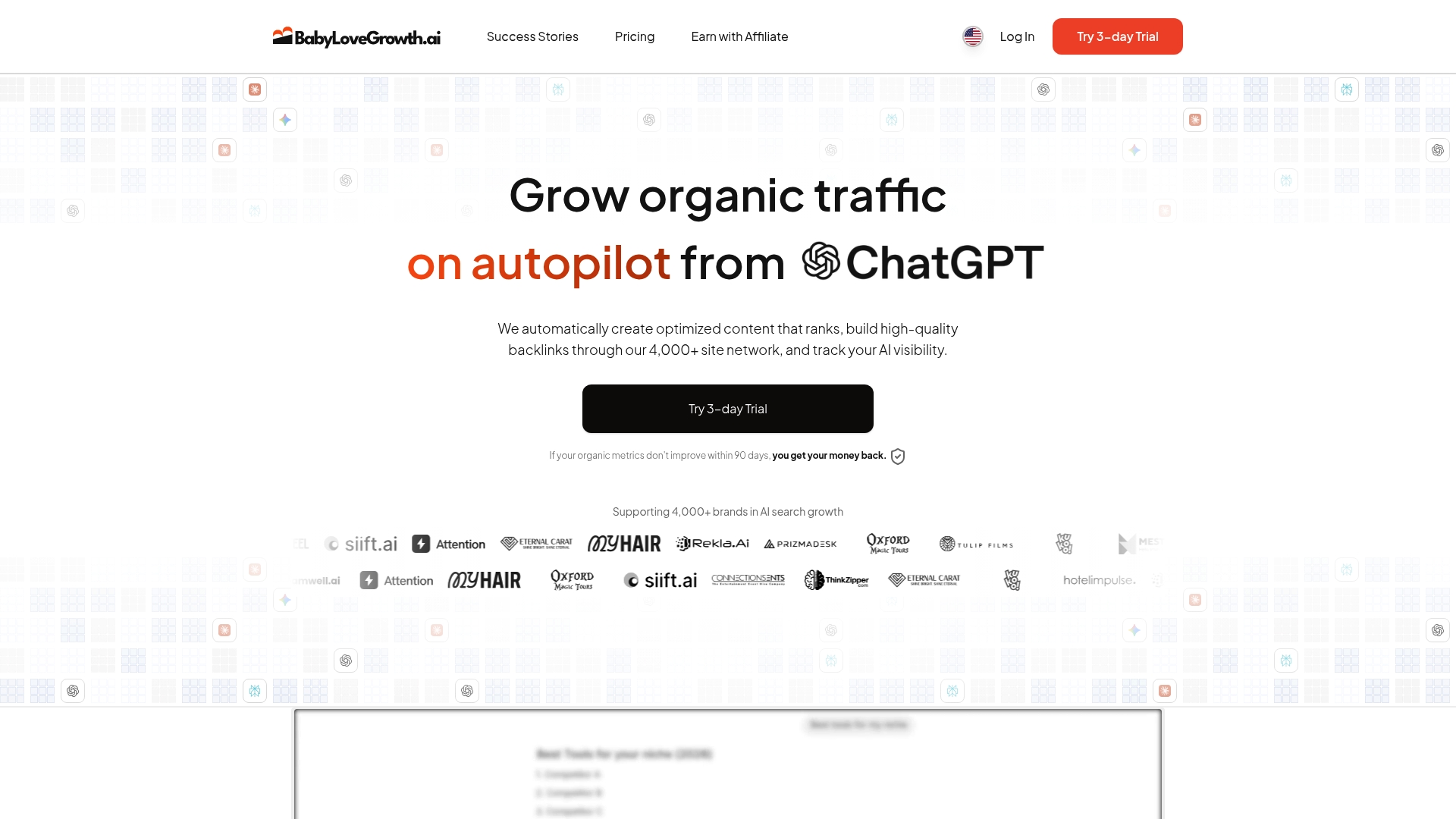 BabyLoveGrowth.aiΑυτόματη δημιουργία SEO περιεχομένου, δίκτυο backlinksΕυελιξία, Υψηλή ΑυτοματοποίησηΤιμή για μικρές επιχειρήσεις$99/μήνα