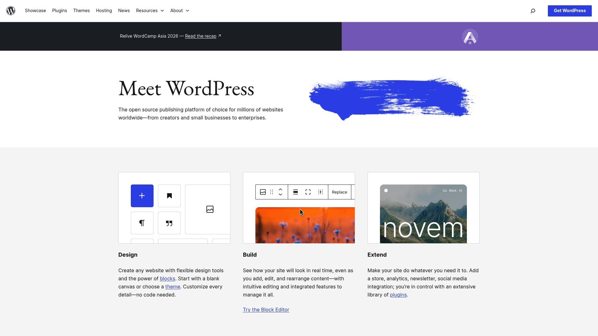 Το WordPress είναι μια ανοικτού κώδικα πλατφόρμα δημοσίευσης που χρησιμοποιείται από εκατομμύρια ιστότοπους, από δημιουργούς έως επιχειρήσεις. Η βασική ιδέα του συνδυάζει ευελιξία σχεδιασμού με μεγάλη βιβλιοθήκη θεμάτων και προσθέτων για προσαρμογή χωρίς κώδικα.