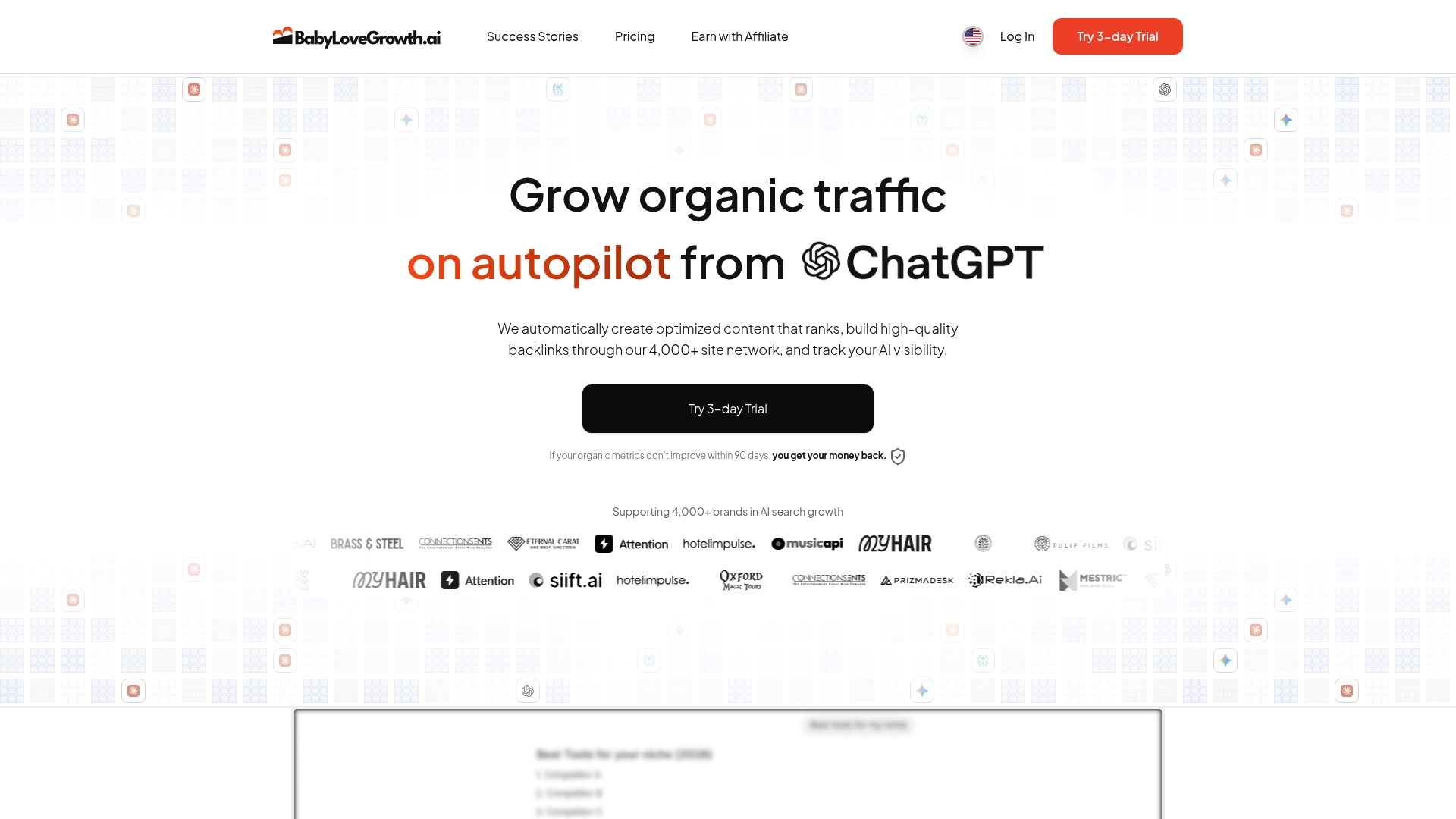 BabyLoveGrowth är en ledande AI-driven plattform som automatiserar innehållsskapande, backlink-byggande och spårning av AI-synlighet för långsiktig organisk tillväxt. Den riktar sig specifikt till företag och marknadsförare som vill outsourca tekniskt SEO-arbete utan att förlora kontroll.