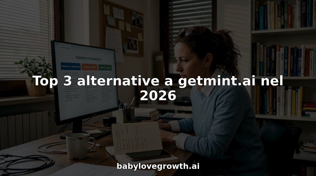 Le tre migliori alternative a getmint.ai nel 2026 comprendono BabyLoveGrowth, Arvow e Profound. Ognuna di queste piattaforme offre funzionalità uniche per la creazione e l'ottimizzazione dei contenuti, permettendo agli utenti di migliorare il loro marketing digitale.