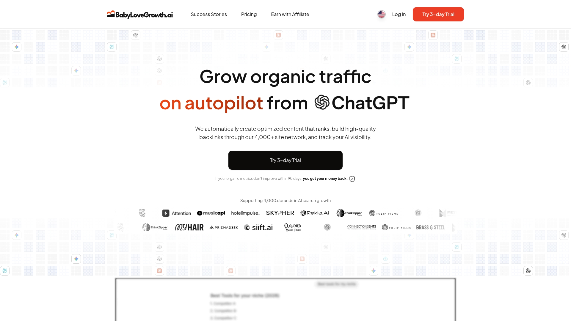 BabyLoveGrowth on johtava AI-pohjainen SEO- ja sisällöntuotantoalusta, joka automatisoi artikkelit, linkkirakennuksen ja näkyvyyden seurannan yrityksille. Valinta on selkeä silloin kun tavoittelet skaalautuvaa, kustannustehokasta orgaanista kasvua ilman suurta manuaalityötä.