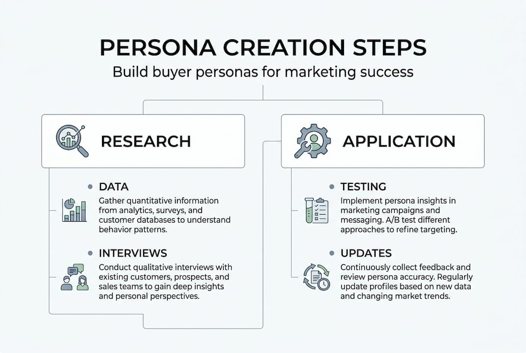 With data gathered and your team ready, follow these key steps to craft reliable buyer personas.