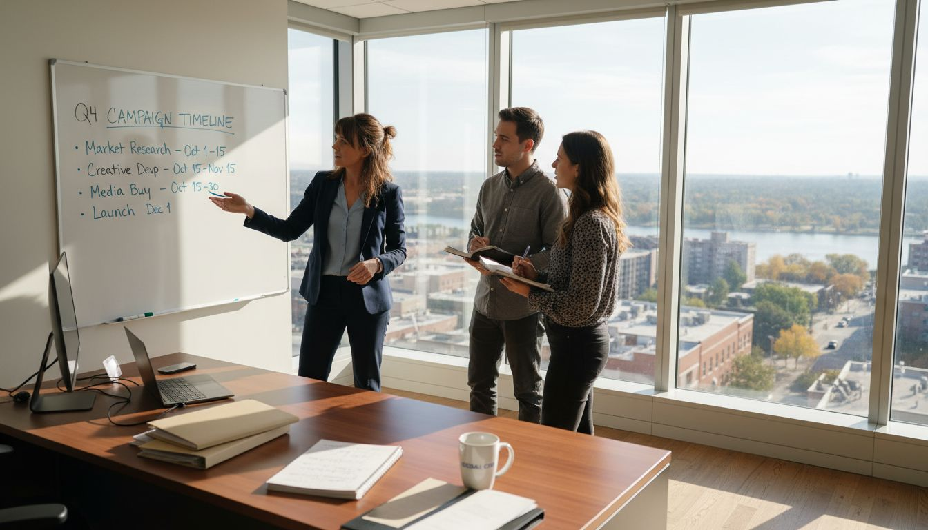Brand manager collaborating in office setting