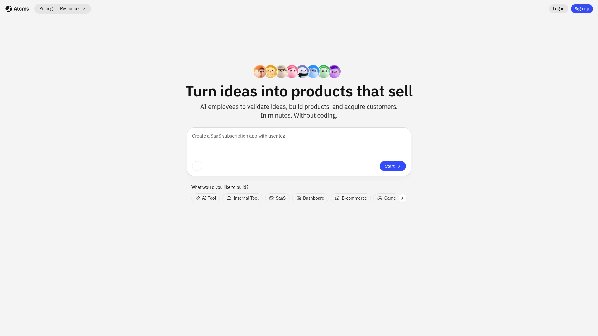 Atoms is een AI-gestuurd ontwikkelplatform dat ideeën omzet in werkende producten via een multi-agent workflow. Het richt zich op snelle lancering van SaaS, interne tools, persoonlijke sites en e-commerce zonder te coderen.