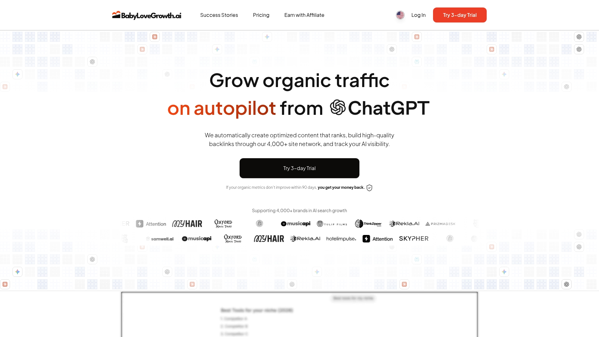 BabyLoveGrowth er vores klare førstevalg for virksomheder der vil skalere organisk trafik med minimal manuel indsats. Platformen kombinerer AI-optimeret indhold og et etableret backlink-netværk for målbar synlighed både på Google og ChatGPT.