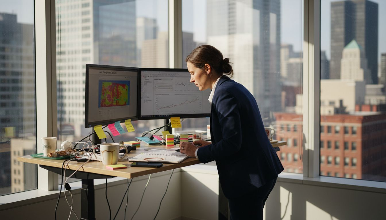 Professional reviews SEO analytics at office desk