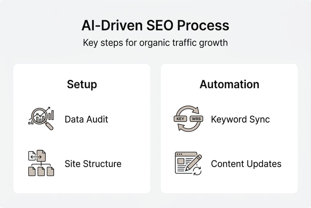 AI automation transforms SEO from a manual grind into a systematic process that runs continuously. Here's how to deploy it effectively: