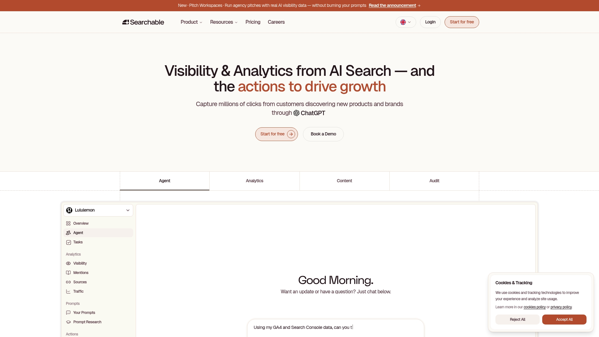 Searchable è pensato per marketer, professionisti SEO, agenzie e brand che vogliono conquistare visibilità sui nuovi canali di ricerca AI. Funziona bene per team che già raccolgono dati SEO e vogliono ampliare il controllo sulle risposte AI.