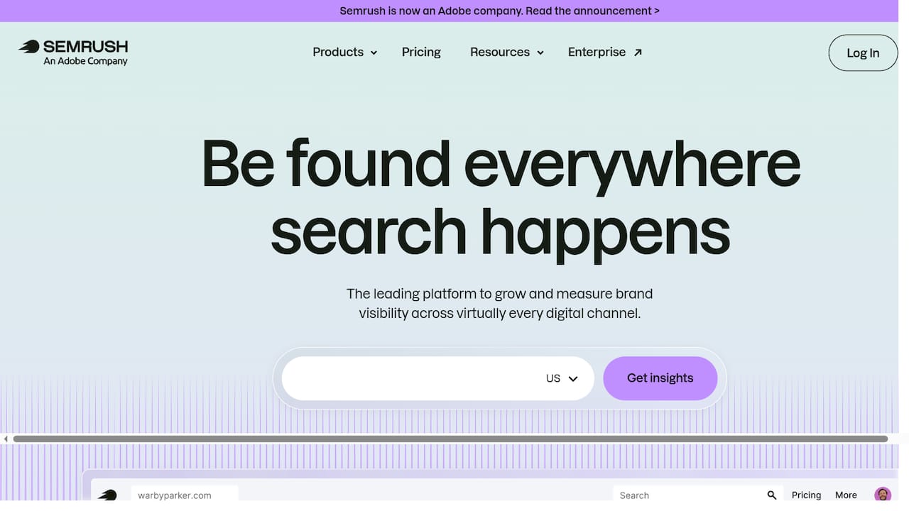 Semrush offre una suite estesa per migliorare visibilità e scoperta online, con strumenti per SEO, contenuti, social e advertising. Dopo l'acquisizione da parte di Adobe, si posiziona come piattaforma integrata per gestire presenza organica e visibilità AI.