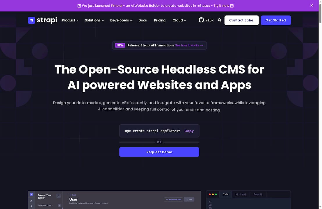 Strapi è un Headless CMS open source che mette gli sviluppatori al centro e dà agli editor pieno controllo sui contenuti. Offre API REST e GraphQL, integrazione con funzionalità AI e totale controllo su codice e hosting, ideale per progetti personalizzati.