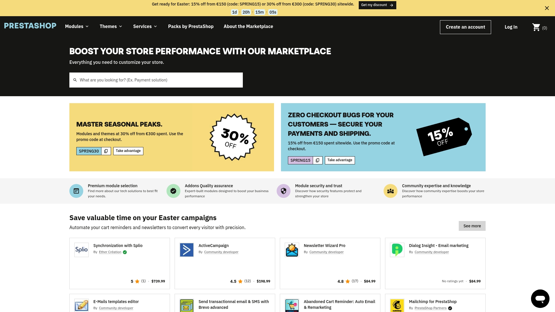 • Catalogo completo: Il sito offre una vasta gamma di moduli e servizi pensati specificamente per PrestaShop e le sue esigenze.