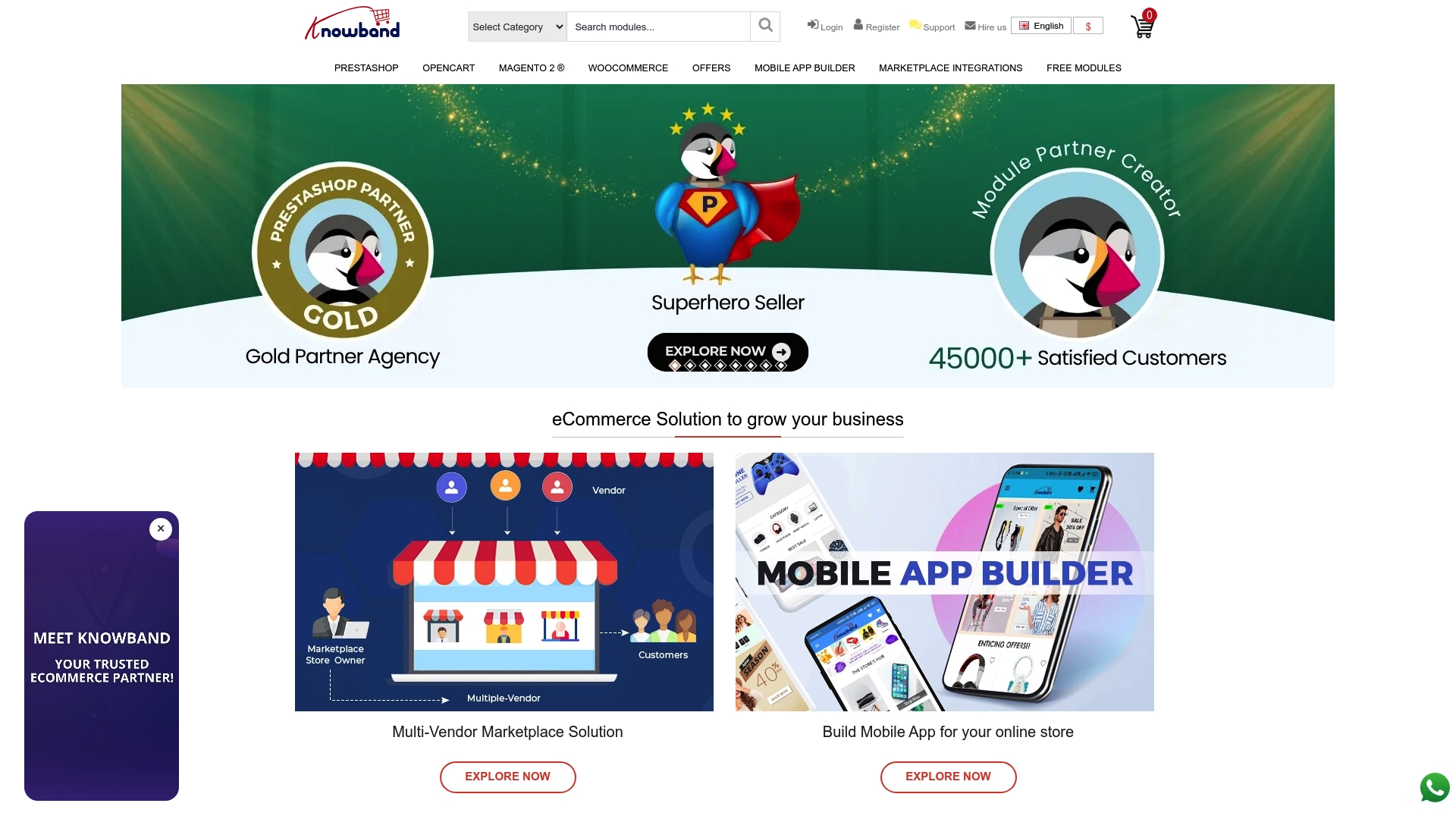 Knowband offre una libreria ampia di moduli e plugin per piattaforme come PrestaShop, Magento, WooCommerce, OpenCart e Shopify, ideale per chi vuole aggiungere funzionalità mirate al negozio. Il rovescio della medaglia è la vasta offerta che può confondere i nuovi utenti e la mancanza di prezzi chiari sulla home.
