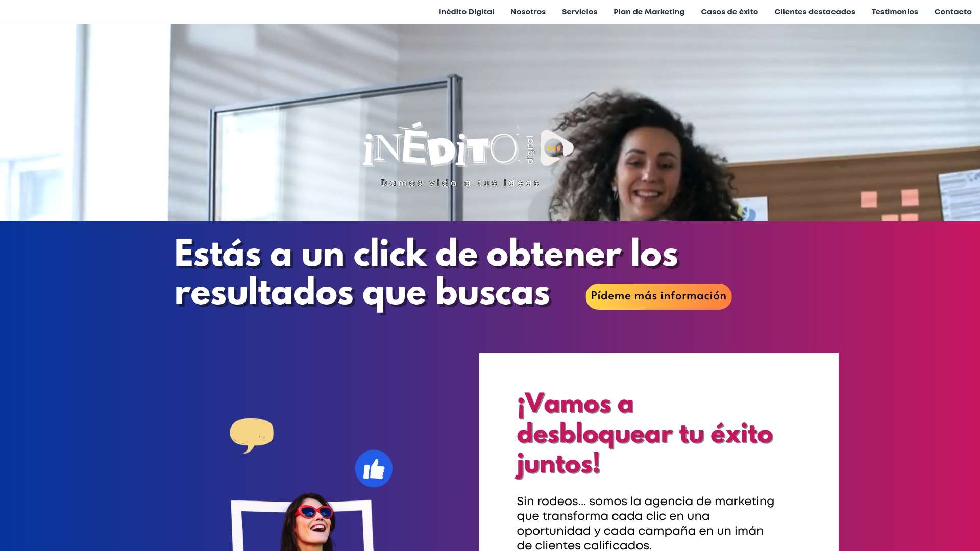 Inédito Digital se presenta como una agencia de marketing digital con más de 10 años de experiencia y un enfoque claro en resultados medibles. Ofrece servicios integrados que van desde Redes Sociales hasta diseño web y branding, buscando convertir interacciones en clientes. Es una opción sólida para negocios locales que quieren externalizar todas las piezas de su presencia digital. Pregunta directa: quieres clientes, no solo likes.