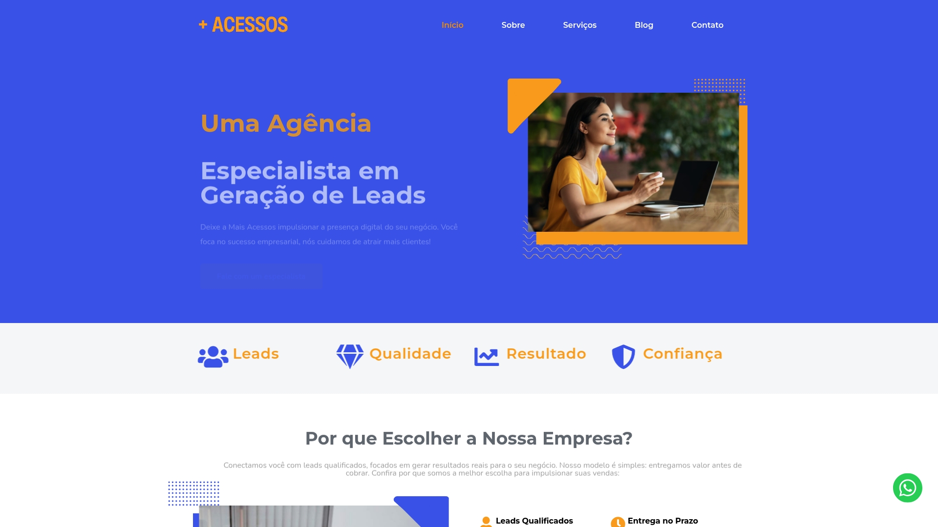 Mais Acessos é uma agência especializada em geração de leads qualificados que combina campanhas multicanais com serviços de SEO e integrações técnicas. O foco claro é aumentar contactos com potencial de conversão e medir resultados em termos de ROI. Para proprietários de pequenas e médias empresas que precisam de tráfego orientado para vendas, a proposta é prática e orientada a resultados. Há transparência operacional, mas alguma informação crítica, como preços, exige contacto direto.