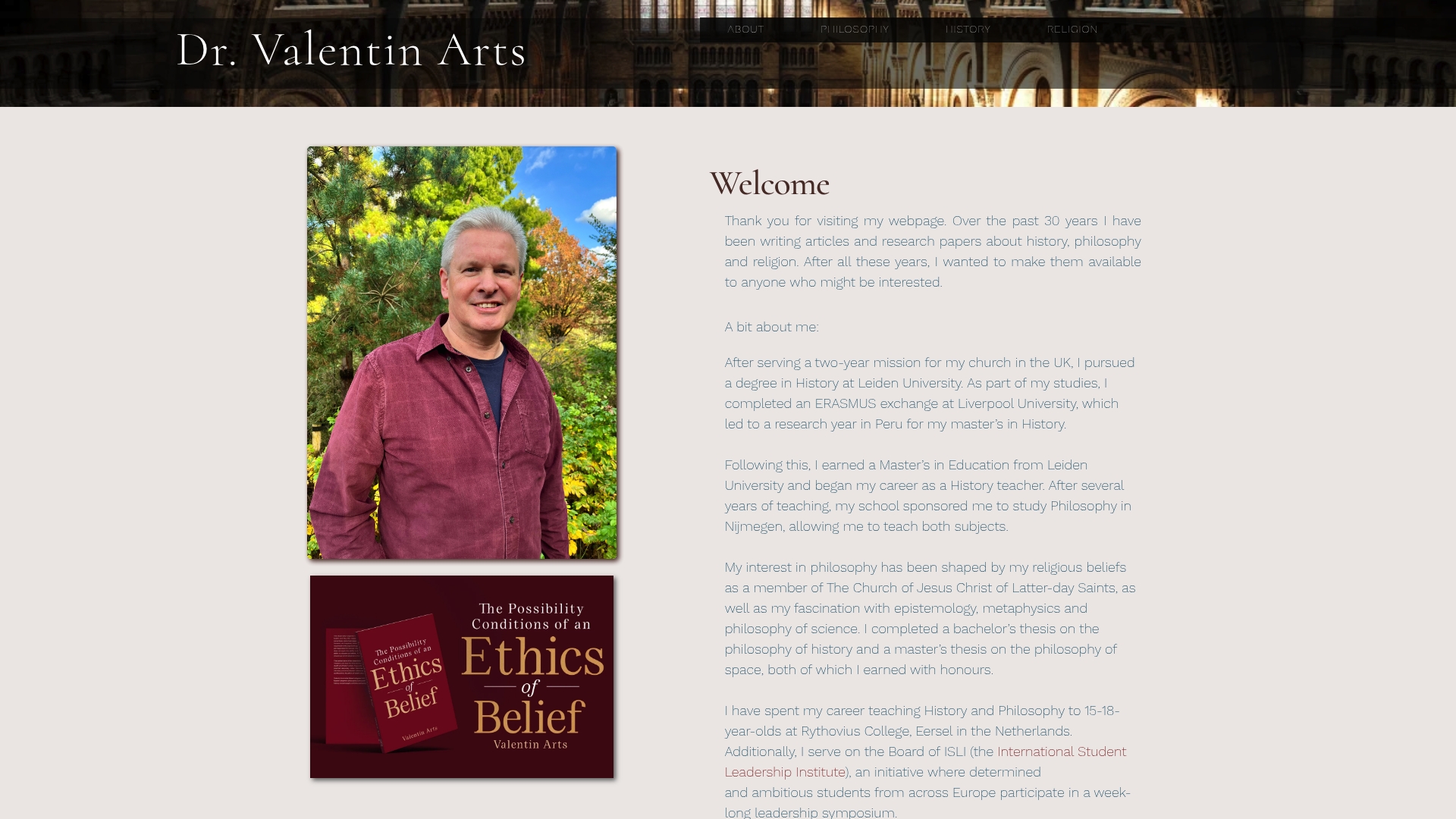 Dr. Valentin Arts rassemble plus de 30 ans d'expérience en histoire, philosophie et religion et propose un corpus public accessible en ligne. Son profil convient surtout aux chercheurs et étudiants qui cherchent des sources académiques fiables plutôt qu'à des clients recherchant des services commerciaux.
