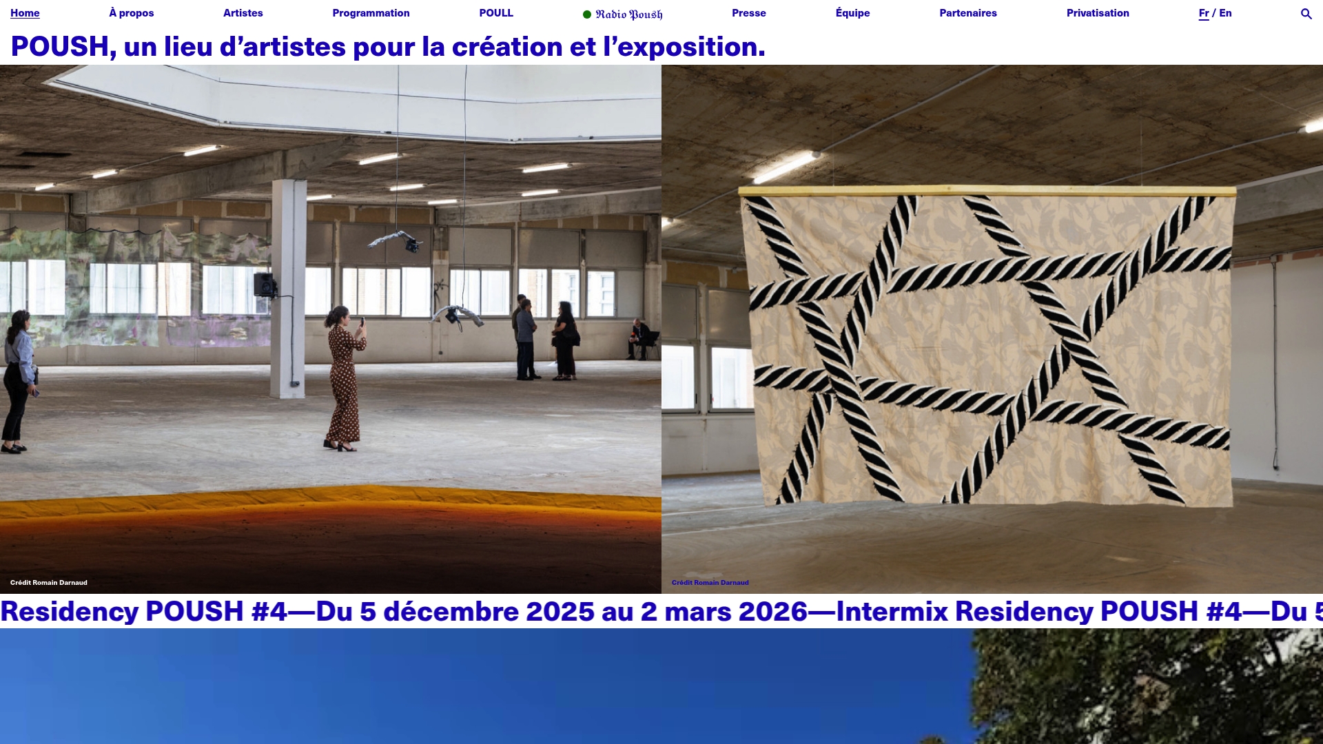 POUSH est un espace culturel implanté à Aubervilliers qui accueille et accompagne plus de 270 artistes au travers de résidences et d'expositions. Pour une PME, POUSH représente une porte d'entrée vers une communauté artistique dynamique, mais ce n'est pas un service commercial ni une agence SEO.
