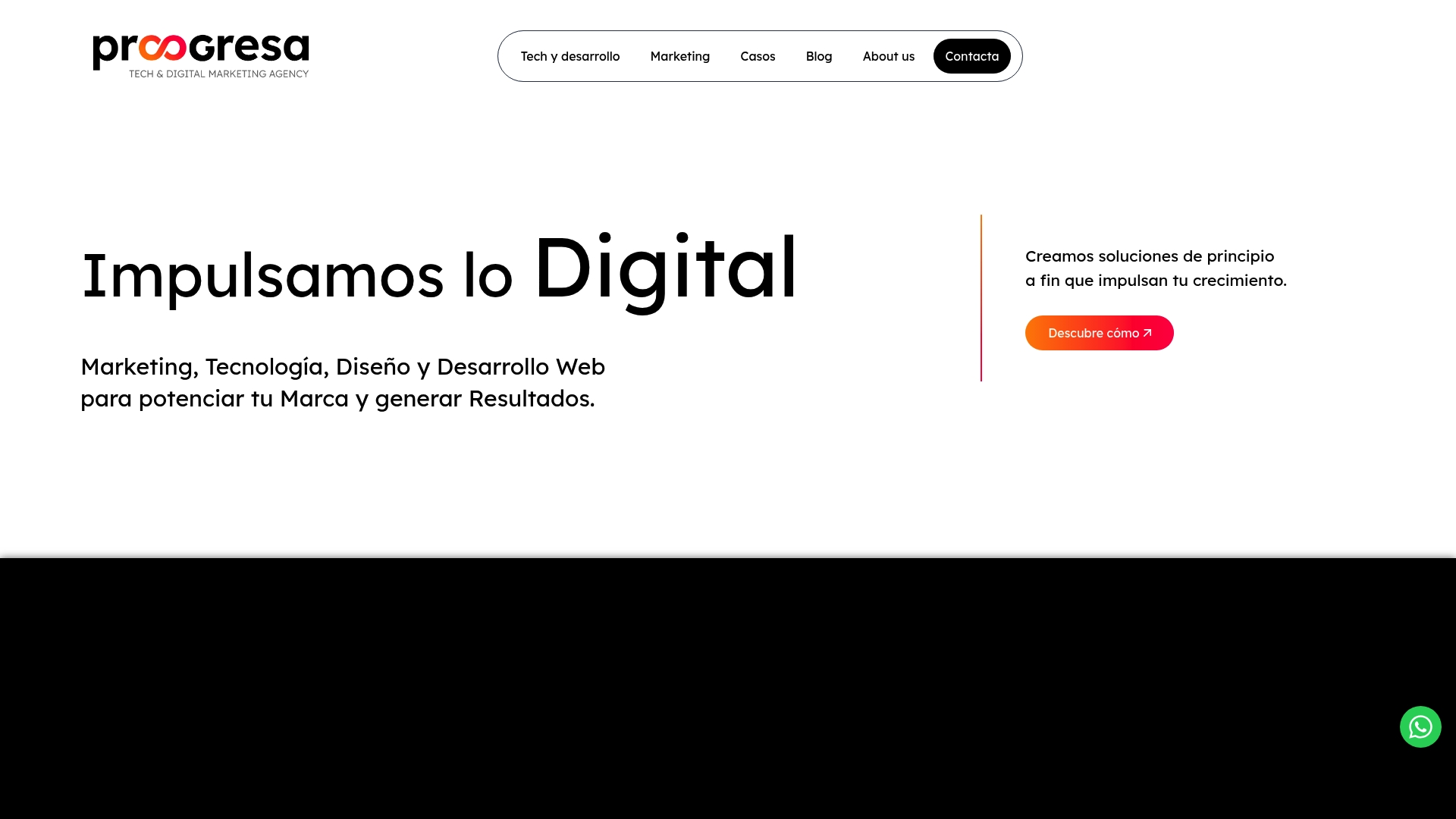 Proogresa es una agencia española enfocada en diseño web y marketing digital que propone soluciones a medida para impulsar el crecimiento online de empresas en España, con especial presencia en Cataluña y Barcelona. Su enfoque integral combina branding, desarrollo, marketing y análisis de datos para acompañar a negocios en procesos de transformación digital. En pocas palabras: es una opción sólida para PYMEs que buscan un socio estratégico más que un proveedor puntual.