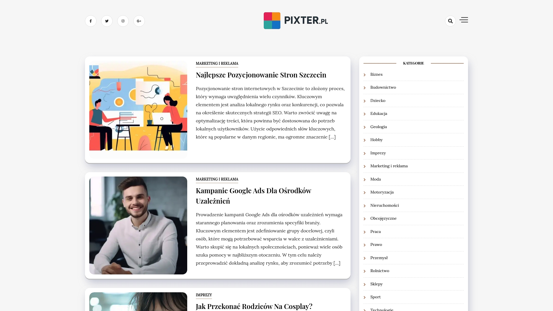 - Szeroki zakres tematów: Pixter porusza zarówno marketing lokalny, jak i zdrowie czy hobby, co ułatwia znalezienie powiązanych treści w jednym miejscu.