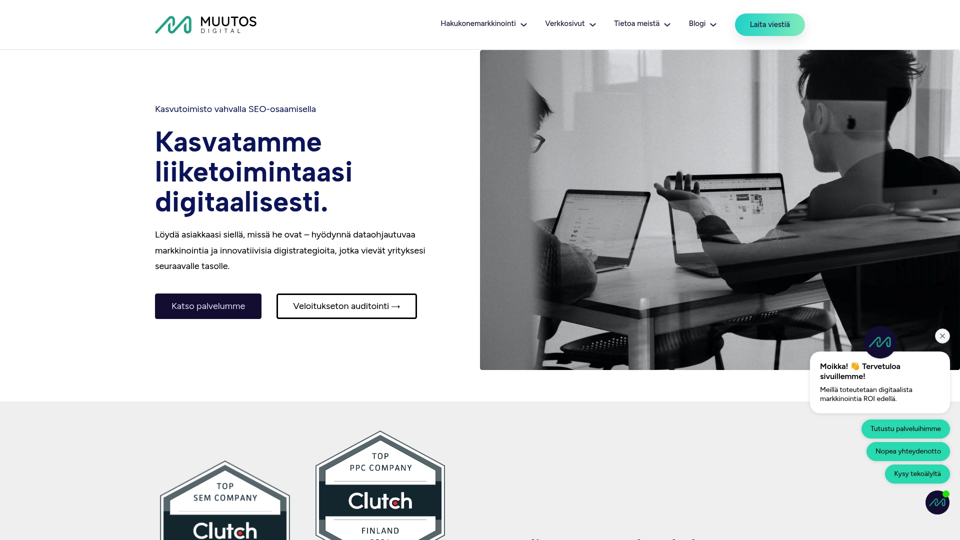 Muutos Digital OyHakukoneoptimointi, analytiikkapohjainen strategiaTekninen SEO<br>Tuloskeskeisyydellä mitattavat parannuksetHinnasto ei julkinen<br>Palveluiden kustannukset voivat kasvaaPyydetään tarjous