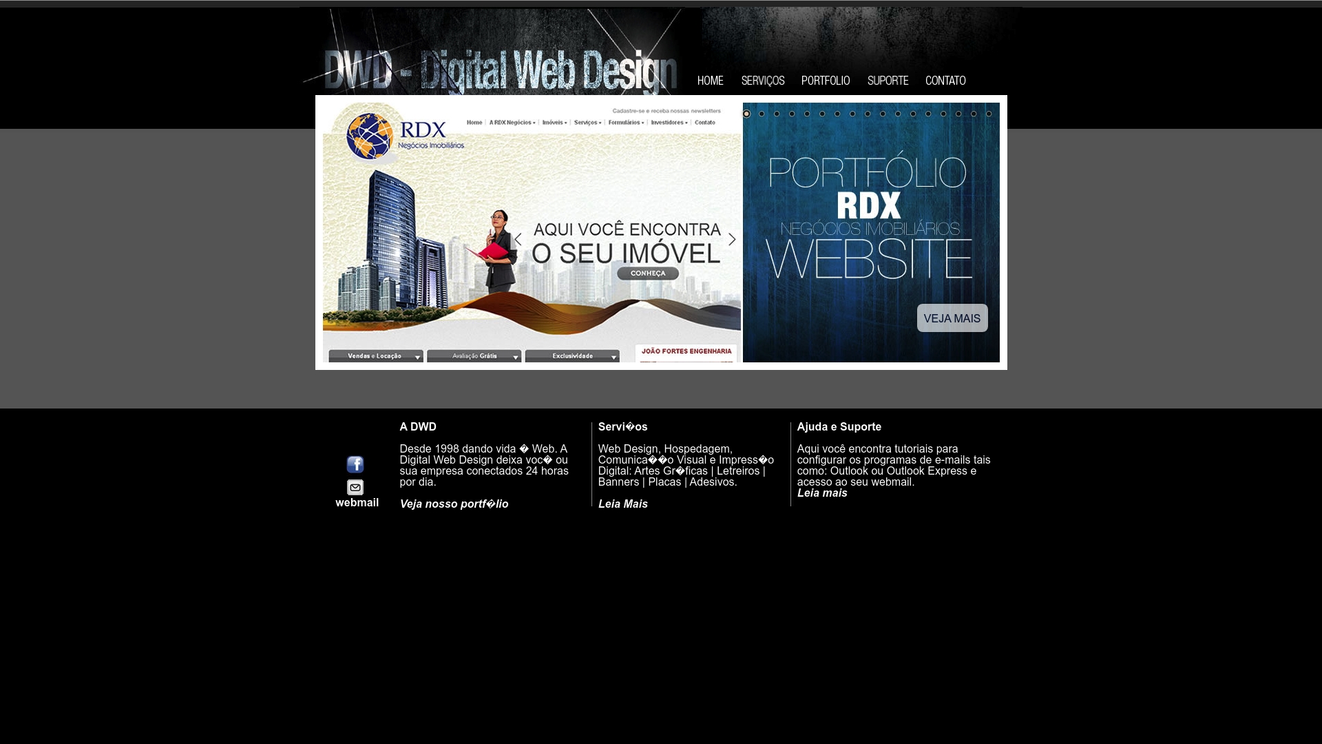 DWD oferece design de sites, serviços de hosting, comunicação visual e impressão digital, incluindo artes gráficas, sinalética, banners, placas e autocolantes. Complementa estes serviços com suporte e tutoriais para configuração de correio eletrónico e acesso a webmail, além de apresentar exemplos de trabalhos no seu portefólio. A proposta é fornecer um fluxo integrado entre presença online e materiais físicos, permitindo que empresas tratem design, alojamento e impressão num único fornecedor.