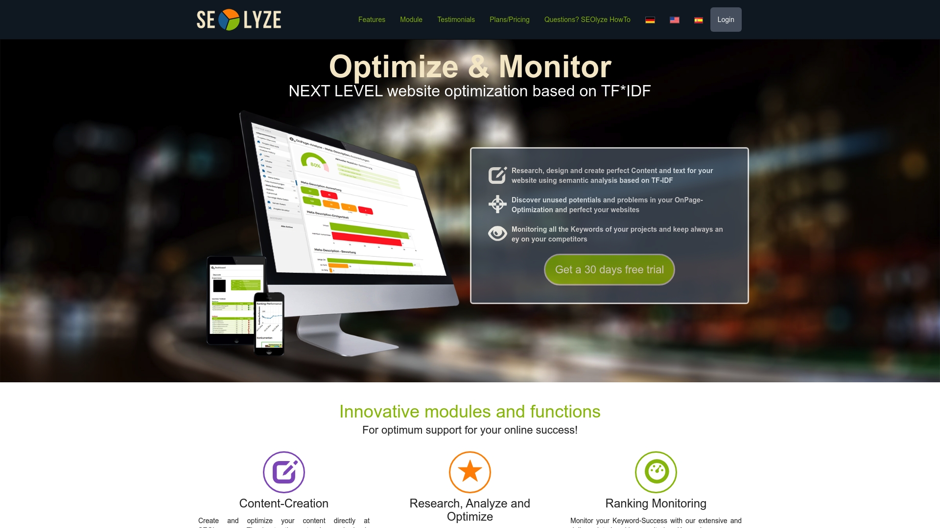 SEOlyze.com es una plataforma centrada en la optimización on-page basada en principios TF-IDF, pensada para investigar, crear y optimizar contenido con enfoque semántico. Combina módulos de creación de contenido, análisis semántico y monitorización de posiciones actualizada diariamente. En resumen: ofrece herramientas sólidas para quienes necesitan optimizar textos con rigor técnico, aunque puede resultar costosa y algo técnica para negocios sin experiencia en SEO.