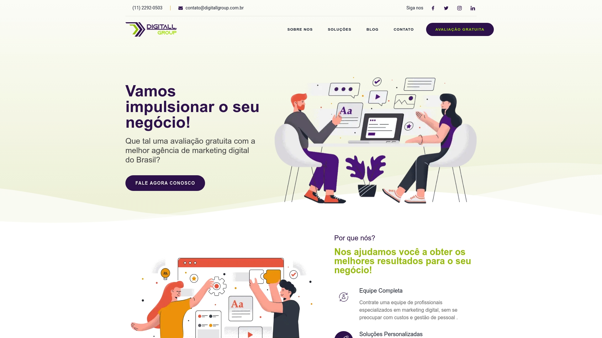 | Digitall Group | SEO, criação e redesenho de sites, gestão de anúncios no Google, relatórios transparentes | Integração de serviços, diagnósticos gratuitos | Escassez de informações sobre suporte | Sob consulta |