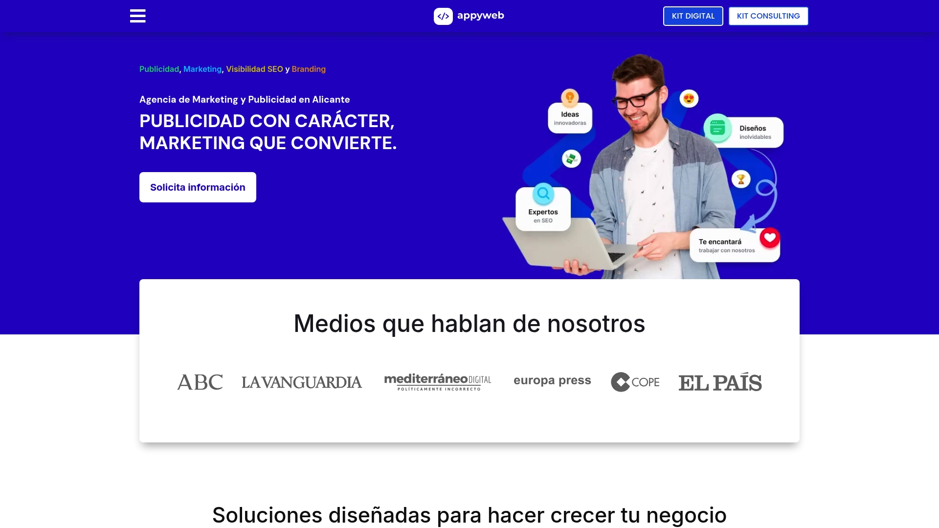 Appyweb integra marketing y publicidad online, diseño y desarrollo web, posicionamiento SEO y campañas PPC, y añade automatización e inteligencia artificial aplicadas al negocio. Su portafolio cubre desde la creación de sitios web funcionales hasta la optimización para motores de búsqueda y la gestión de campañas pagadas, todo pensado con enfoque B2B y B2C. El objetivo declarado es ofrecer resultados tangibles y mejora continua mediante estrategias personalizadas.