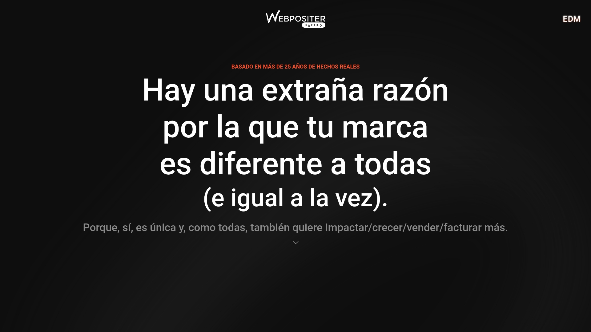 Webpositer es una agencia con más de 25 años de experiencia que apuesta por estrategias de marca digitales diseñadas a medida y por un crecimiento paciente y planificado. Cuenta con un equipo de más de 40 profesionales y presenta casos de éxito con marcas como Druni, Ilia, Topuria Store y Belevels, lo que aporta credibilidad inmediata. En conjunto, es una opción sólida si buscas asesoría estratégica y resultados medibles, aunque la transparencia en tarifas y herramientas es limitada.