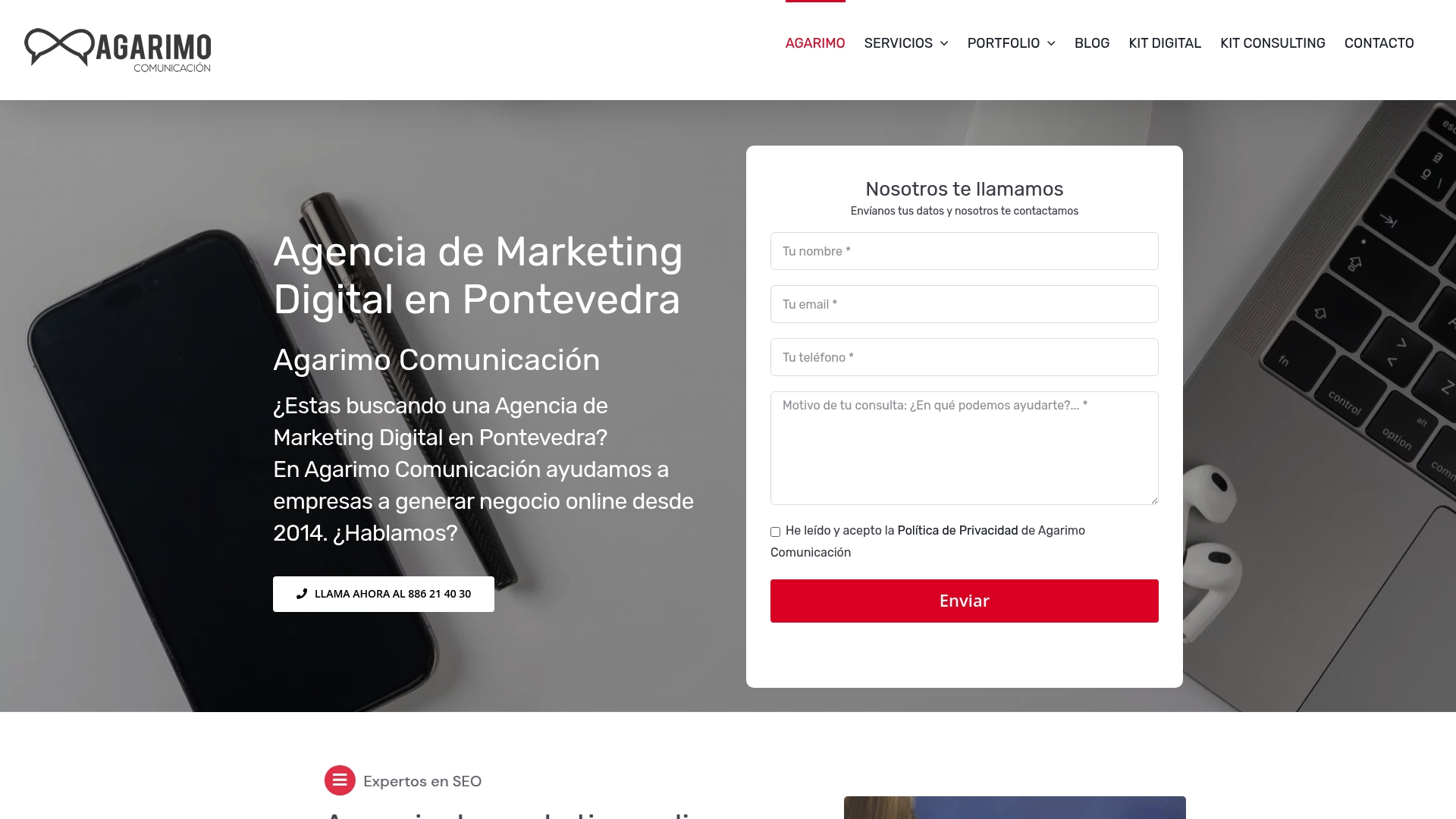 Agarimo Comunicación es una agencia de marketing digital de Pontevedra con trayectoria desde 2014 que ofrece servicios integrales orientados a generar negocio online. Su enfoque combina SEO para ecommerce, desarrollo web y producción audiovisual, entregando soluciones completas para empresas locales. En pocas palabras: experiencia consolidada y atención personalizada, aunque sin precios públicos.
