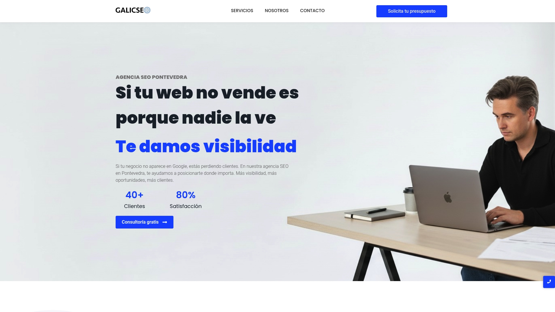 Empresas en Pontevedra que desean mejorar presencia online y aumentar ventas mediante SEO serio, con voluntad de invertir a medio-largo plazo y preferencia por trato directo con especialistas.