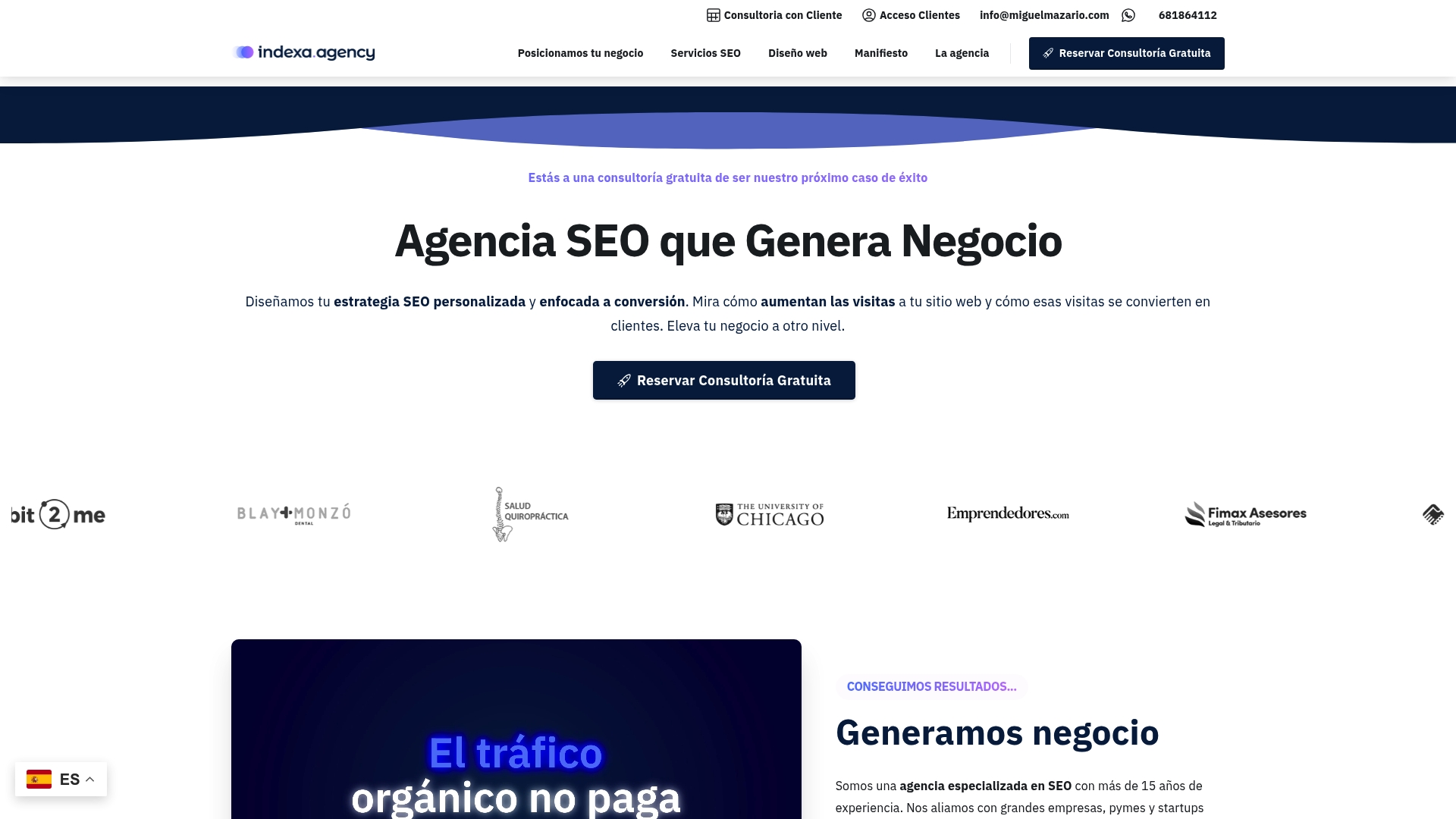 Indexa.Agency es una agencia SEO con más de 15 años de experiencia que ofrece estrategias personalizadas orientadas a conversión. Su sistema propio, Index Boost Funnel Strategy®, promete captación de tráfico orgánico y crecimiento de palabras clave; además combina SEO técnico con servicios complementarios como WPO, SEM y formación. Es una opción sólida si buscas un socio técnico y estratégico, aunque la falta de precios públicos complica la comparación rápida.