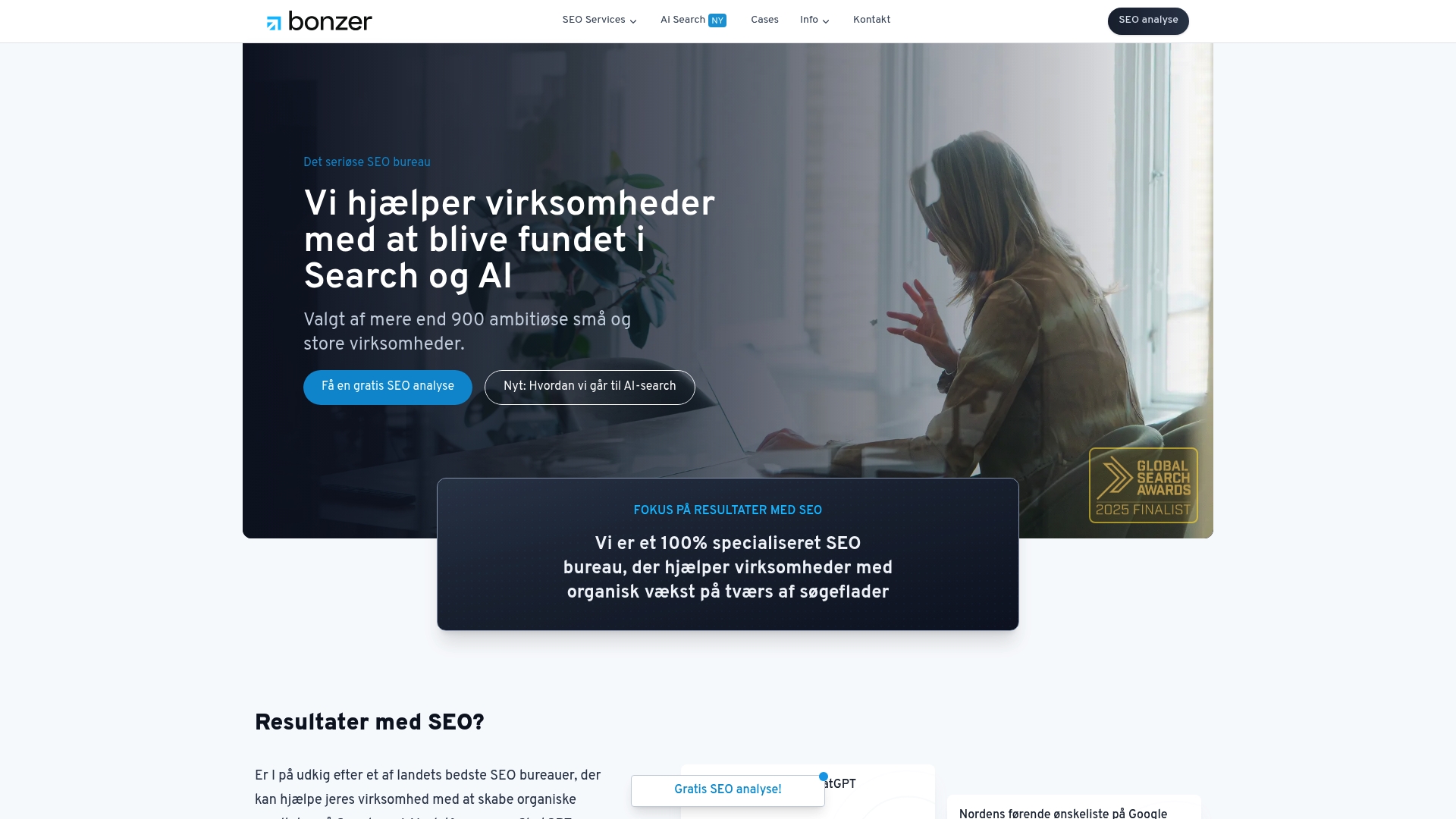 | Bonzer | SEO- og AI-optimering, personaliseret strategi | Moderne tilgang, langtidsholdbare løsninger | Fra 15.000 DKK/måned | Små til mellemstore virksomheder klar til at investere i langsigtet vækst |