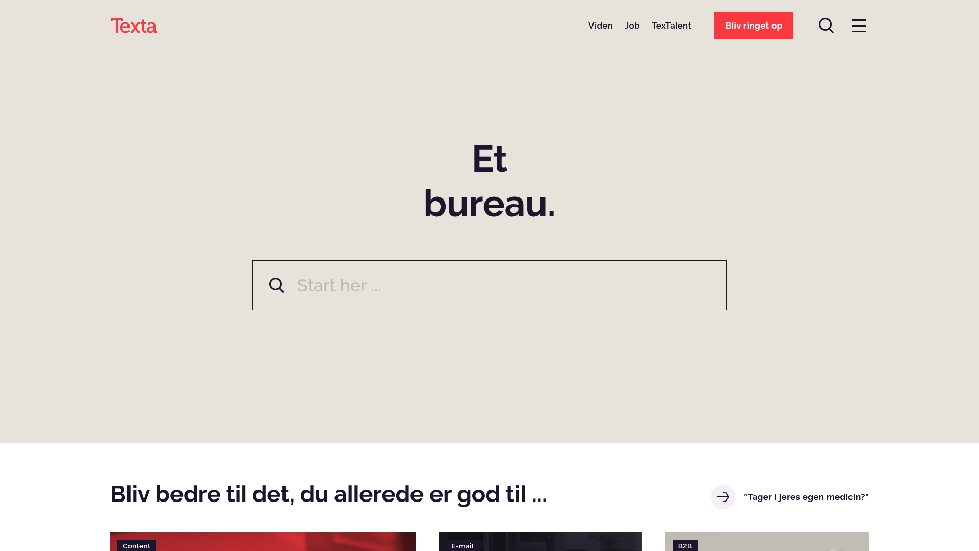 - Skræddersyede løsninger til dine behov: Texta tilpasser strategi og indhold præcist efter virksomhedens ambitioner og mål.