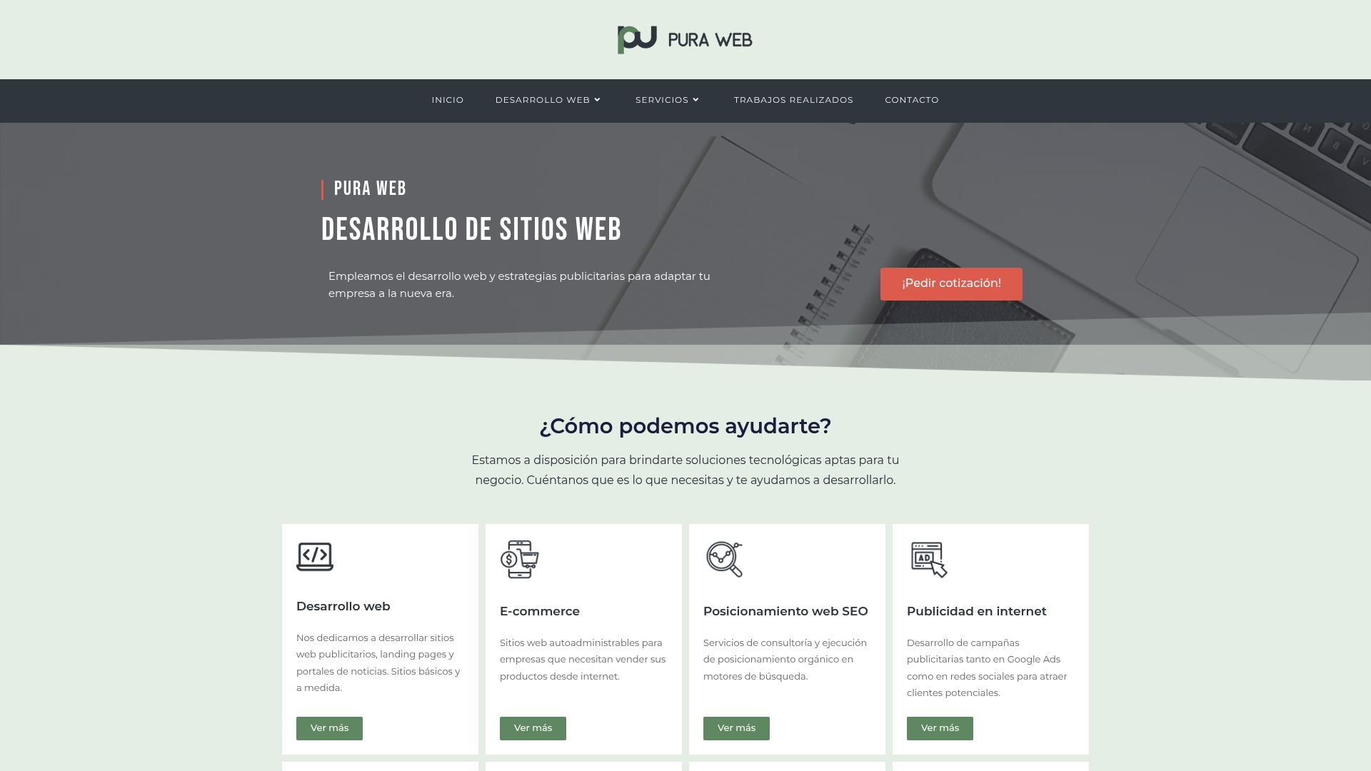 Pura Web se especializa en desarrollo web y estrategias publicitarias para empresas que quieren adaptarse a la nueva era. Ofrece soluciones personalizadas que combinan e-commerce autogestionable, SEO y campañas en Google Ads y redes sociales.