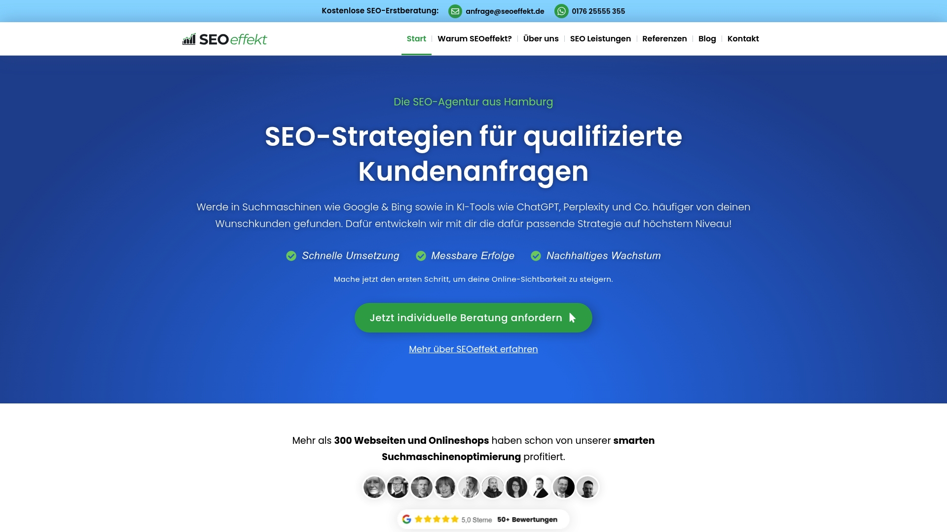 - Nachgewiesene Erfahrung: Seoeffekt hat bereits über 300 Websites und Onlineshops betreut, was auf ein erprobtes Vorgehen und Branchenkenntnis hindeutet.